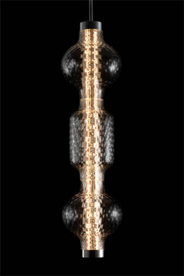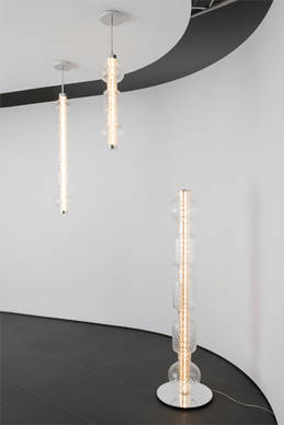 Die 2024 erstmals vorgestellte Alambicco hat inzwischen Familienzuwachs bekommen: Der ursprüngliche Entwurf – als vertikale wie horizontale Pendelleuchte erhältlich – wurde durch das längere Modell Alambicco XL ergänzt, um auch größere Räumlichkeiten ausleuchten zu können. Ebenfalls neu ist die Stehleuchte, die als skulpturale Lichtfigur in verschiedensten Interieurs sämtliche Blicke auf sich lenkt. Das modulare Konstruktionsprinzip ermöglicht nicht zuletzt die Erarbeitung individueller Entwürfe für spezifische Projekte: Das gilt besonders für öffentliche Bereichen, etwa die Hotellerie oder den Einzelhandel.