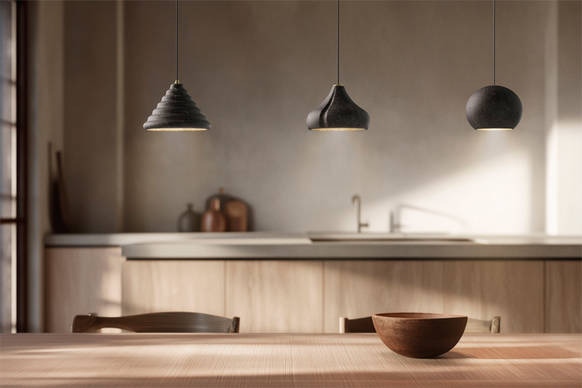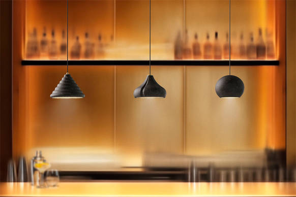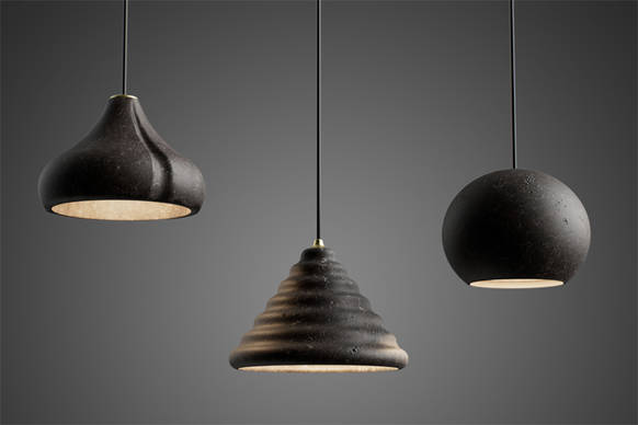 Die drei Pendelleuchten Alicudi, Filicudi und Panarea tragen die Namen von Inseln des Äolischen Archipels - und damit das Erbe ihrer vulkanischen Herkunft. Die gewählten Formen unterstreichen sowohl die gestalterischen Möglichkeiten als auch die Grenzen des verwendeten Materials.
