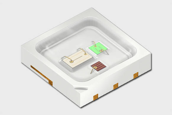 Die individuell adressierbaren Farbkanäle eröffnen dem Anwender maximale Flexibilität hinsichtlich der Farbwahl und Farbmischung. Die Deltaanordnung der LED-Chips gewährleistet ein außerordentlich gutes Farbe-über-Winkel-Verhalten, das besonders bei der Einkopplung in runde Lichtleiter von entscheidendem Vorteil ist. Die geringe Bauteilhöhe von nur 0,6 mm in Kombination mit dem kompakten Footprint von 3,0 mm x 3,0 mm erlaubt die Umsetzung sehr anspruchsvoller Applikationen, bei denen der Platzbedarf der Einzelkomponente entscheidend ist.