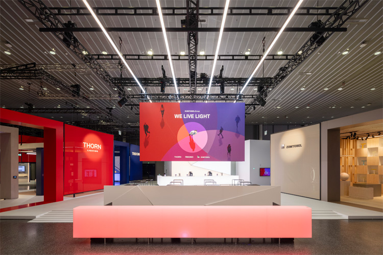 Das Konzept findet durch eine einladende Gestaltung mit ausgewählten Materialien und Formen Ausdruck und stellt dabei den Menschen mit seinen Bedürfnissen in den Mittelpunkt. Auf der größten Lichtfachmesse in Frankfurt, der Light+Building, präsentiert die Zumtobel Group gemeinsam mit ihren Marken erneut nachhaltige, innovative und intelligente Produkte und Lösungen: Im Forum der Messe Frankfurt sind Besuchende dazu eingeladen, die Welt des Lichts persönlich zu erleben.