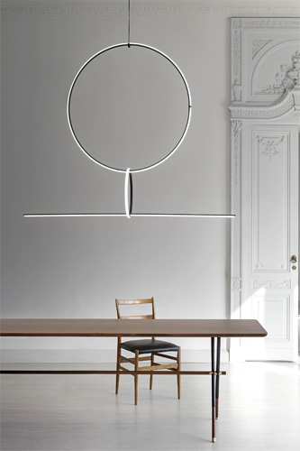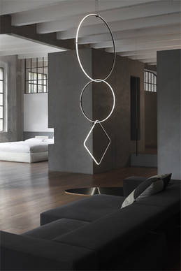 Ebenfalls zu sehen ist das Leuchtensystem „Arrangements“ von Michael Anastassiades. Für seine Kollektion hat sich der Designer von Schmuckstücken inspirieren lassen, die er im Großformat erstrahlen lässt. Die geometrischen Beleuchtungskomponenten können zu schmuckähnlichen Hängeleuchten bis hin zu raumprägenden Lichtobjekten kombiniert werden.