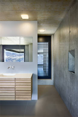 Neben der besonderen Lichtwirkung der Nimbus-Leuchten ist es vor allem ihr dezentes Produktdesign, warum sie im Haus am Vierwaldstättersee zum Einsatz kommen. „Die optisch schlichten Leuchten unterstützen die zurückhaltende Materialisierung und Farbgestaltung“, erklärt das Büro architektur3 ag, das für das Einfamilienhaus verantwortlich zeichnet. Außen schwarzer Sichtklinker, innen viel Sichtbeton, schlichte Farben und warme Holzoberflächen und -möbel charakterisieren das Haus. Mit diesem sogenannten Architektenhaus-Look harmonieren die minimalistischen Nimbus-Leuchten perfekt.