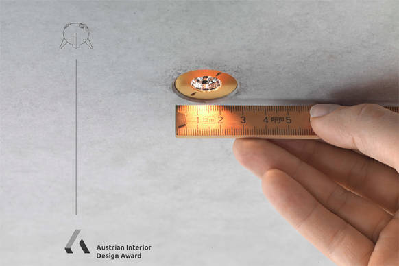 Die Einbauleuchte mit Sichtbetonkapsel wurde in der Kategorie „Produktdesign – Beleuchtung“ mit dem Austrian Interior Award ausgezeichnet, dem ersten österreichweiten Designpreis für die Bereiche Produktdesign und Innenarchitektur. Vergeben wird er vom unabhängigen Branchennetzwerk Möbel- und Holzbau-Cluster (MHC) der Business Upper Austria oö. Wirtschaftsagentur GmbH – Ziel ist es, Spitzenleistungen des heimischen Interior Designs vor den Vorhang zu holen.