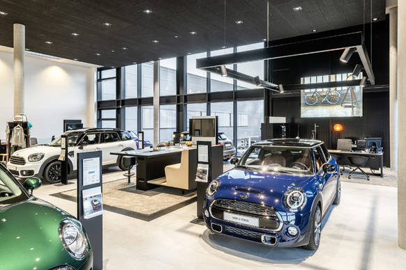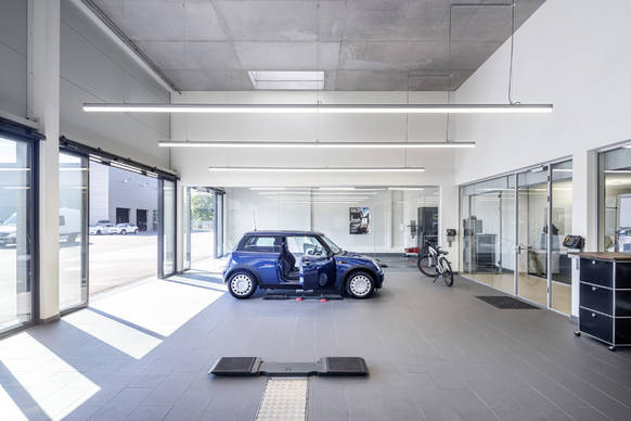 So unterstützt SISTEMA den Neuwagenverkauf im Autohaus der Zukunft, während eine Etage über dem Showroom CANILO Raritäten zur Geltung bringt: die „Autosuite“. Das ist ein exklusiver Stellplatz für Kunden, die einen Oldtimer oder Sportwagen in guten Händen wissen wollen und ihn auch gerne zeigen. Wie im MINI-Showroom überzeugt auch hier SISTEMA in der Grund- und Akzentbeleuchtung, stellt Lacke wie Oberflächen brillant dar.
