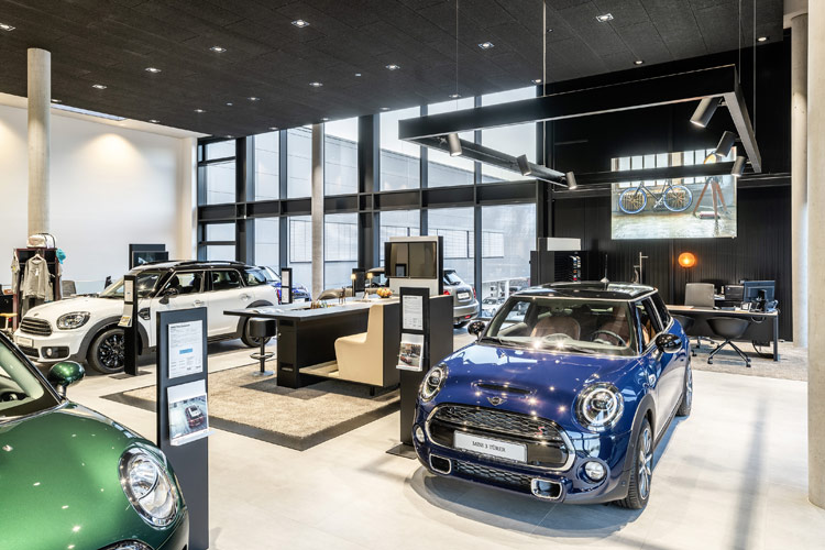 Auf 11.000 Quadratmetern insgesamt präsentiert der hochmoderne Komplex plus Außenbereich die Marke BMW und seine Fahrzeuge so stylish und offen wie nie. Der Innenbereich mit 8.500 Quadratmetern – das sind anderthalb Fußballfelder – wurde vom Showroom bis zur Werkstatt, von der Beratung bis zum BackOffice lichttechnisch entsprechend der CI von BMW gestaltet. „Die stimmige Komplettausstattung ist einer unserer Schwerpunkte in der Retailbeleuchtung und wird immer stärker nachgefragt “, erläutert Christian Albert Schmid von Oktalite. „Als Gemeinschaftsprojekt von Oktalite und Trilux konnten wir für BMW sämtliche Szenarien und Leuchten drinnen wie draußen ideal aufeinander abstimmen“, so der Key Account Manager.