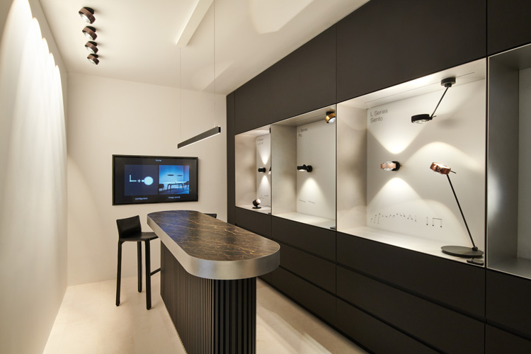 Das multifunktionale Konzept des Showrooms wurde gemeinsam mit dem renommierten Architekturbüro 1zu33 umgesetzt. Auf kleinstem Raum werden Licht und Design in Anwendung in Szene gesetzt und stehen dabei einer klar lesbaren sowie puristisch gestalteten Produktwelt gegenüber, die durch intelligente Lösungen komplett in das Shopkonzept integriert wurde.