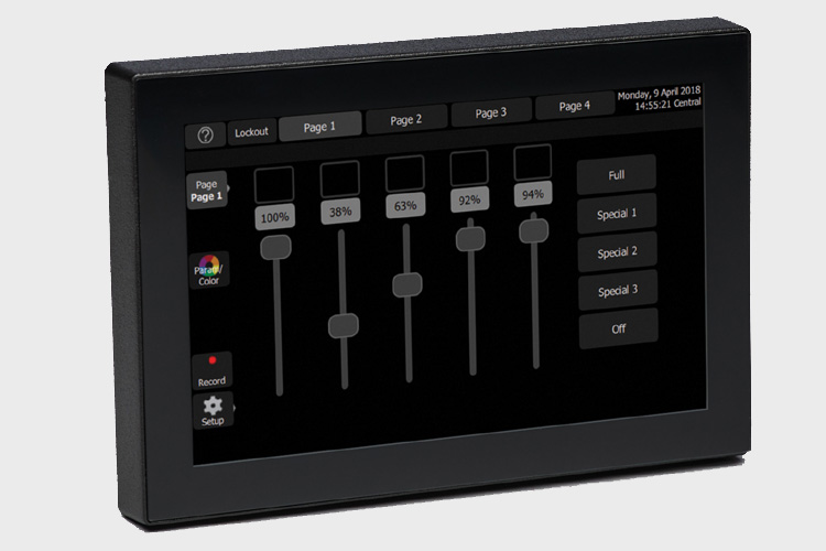 Gebäudeverwalter können EchoTouch für die Programmierung von Echo-Zonen und die Voreinstellung (Preset) der Looks verwenden; so ist die alltägliche Nutzung eines Raums leicht gemacht. Über die intuitive Schnittstelle mit benutzerfreundlichen Fadern und Schaltflächen, die auf dem dynamischen 7-Zoll-Bildschirm angezeigt werden, können spezielle Abläufe mit wenig Zeitaufwand und unkompliziert erstellt werden. Das native RDM macht die Entdeckung und Verwaltung von Beleuchtungsgeräten sogar noch einfacher. Die Farbsteuerung ist schnell erfassbar und mit einem Color Picker und anpassbaren Farbchips zu realisieren, sodass die Nutzer sämtliche Vorteile ihrer Systeme voll ausschöpfen können.