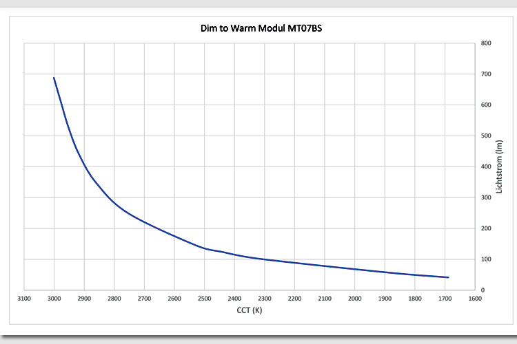Die Dim-to-Warm-Module sind entweder komplett bestückt in AC-Technik und direkt anschlussfertig oder als COB-LEDs (Chip-on-Board) ohne externe Schaltung verfügbar. Sie lassen sich mit konventionellen auf dem Markt befindlichen Dimmern ansteuern.