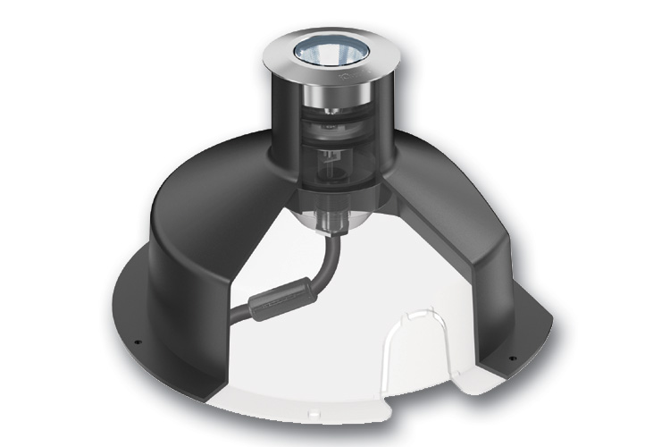 Light Up Orbit für den Einbau in Wand und Decke, im Boden oder Erdreich funktioniert auf Basis einer Single Chip LED, die präzise Ausstrahlwinkel ermöglicht und damit größtmögliche Planungssicherheit gewährt. Exakte 15° oder 30° lassen sich mit der kleinsten Orbit (28 mm) mit starrer Optik erzielen, während der Spielraum bei der mittleren und größeren Einbauleuchte bei 10°, 20° oder 40° liegt. Alternativ gibt es alle drei Baugrößen mit diffuser Lichtverteilung. Eine asymmetrische Optik für die Ausleuchtung des Bodens sowie eine Lichtlanze stehen zusätzlich für die beiden größeren Versionen zur Verfügung.