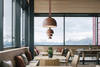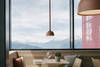 In Anspielung auf das charakteristische Meran-2000-Rot, interpretiert das Projekt dessen Farbnuancen in unterschiedlichen Bereichen des Restaurants, ohne es direkt zu kopieren. Der originale Holzboden und die Holzdecke wurden im gesamten Lokal erhalten und schaffen eine warme und einladende Umgebung, die das sinnliche Wohlbefinden fördert und durch die atemberaubende Aussicht auf die Alpenlandschaft noch bereichert wird. Zu den gezielt erneuerten Elementen, die dem Ambiente den frischesten und modernsten Akzent verleihen, gehören Mobiliar und Leuchten - ein Tandem, das verschiedene Sitzkonfigurationen betont, ob einzelne Tische, Hochtische mit Hockern oder größere Gruppentische.