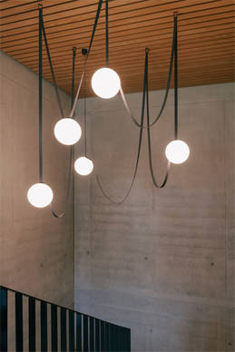 Zudem verweisen die für diese Leuchten verwendeten Materialien wie Seil und Metall „für uns klar auf jene Werkstoffe, die in der Sportausrüstung der Aktivitäten rund um das Restaurant genutzt werden, etwa beim alpinen Skifahren oder beim Klettern", erläutert das Studio.