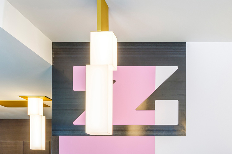 Im Empfangsbereich prägen Licht und Lichtdesign mit klaren Strukturen, Formen und Flächen den Charakter des Hotels. Die von der Decke abgehängten Licht-Skulpturen orientieren sich mit der Form des Deckenanschlusses (an der Rezeption horizontal, im Gastrobereich vertikal) und an der Montagehöhe in den jeweiligen Nutzungsbereichen. Durch den Einsatz von LEDs wird nahezu keine Wärme abgegeben, was vor allem im Check-in-Bereich für ein angenehmes Arbeitsklima sorgt. Die Lichtsetzung versteht sich damit als wesentlicher Bestandteil der ergonomischen Arbeitsplatzgestaltung.