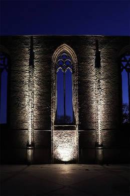 Als Bodenstrahler kann Frax mit Spot-Optik Fensterlaibungen, Säulen oder Gewächse akzentuieren oder bspw. mit zusätzlicher Wallwasher-Mikrolinse Fassaden über die gesamte Fläche homogen erhellen. Besonders hervorzuheben ist hier die Tatsache, dass die Kombination aus Mehrfach-LED und Kollimator-Linsen Farbverschiebungen in den Randbereichen komplett vermeidet.