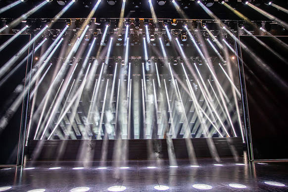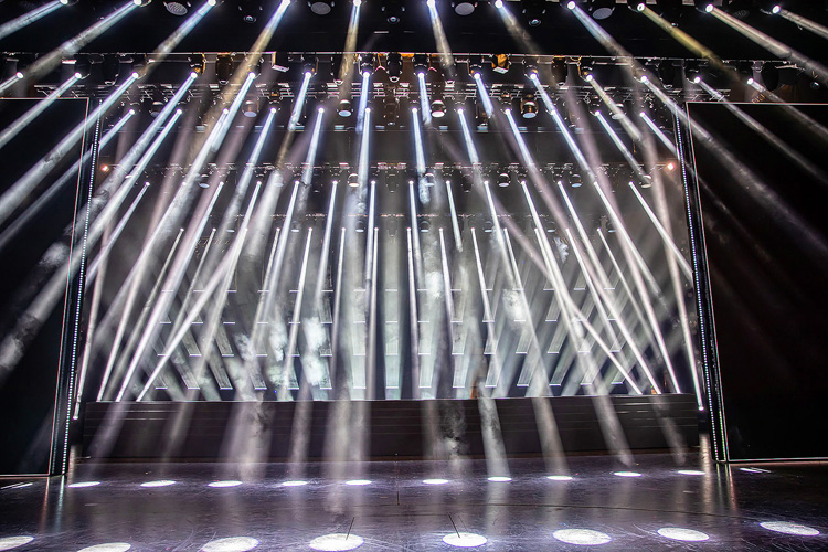 Die Pointes waren die ersten Robe-Scheinwerfer im Palast, so Herda, und seitdem wurde der Bestand stetig erweitert. Heute sind 80 Pointes permanent im Einsatz und werden durch 17 MegaPointes ergänzt. Für die aktuelle Grand Show sind die MegaPointes an den Bühnenseiten auf Wagen montiert und werden für bestimmte Szenen in Positionen im hinteren Bühnenbereich gefahren.