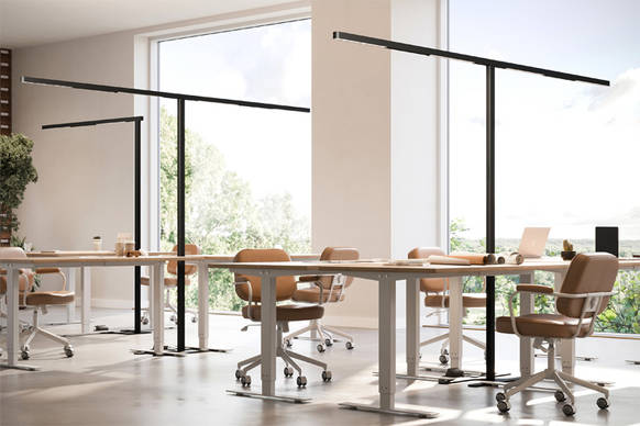 Luxo Align: Die neue Steh- und Pendelleuchten-Serie für Büros, die skandinavisches minimalistisches Design mit individuell steuerbaren Lichtstärken und Farbtemperaturen verbindet. Die umweltfreundlichen Leuchten werden aus recyceltem Aluminium hergestellt. Die Stehleuchten verfügen über einen speziell entwickelten Sensor für die Anwesenheitserkennung und Tageslichtnutzung für einen energieeffizienten Betrieb. Die stilvollen Arbeitsplatzleuchten, die Licht gezielt nach oben und unten abgeben, machen Deckenleuchten überflüssig. Luxo Align wurde bereits bei den IDC.25 Awards in Norwegen als bestes Industriedesign ausgezeichnet.