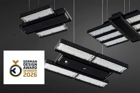 Glamox i65 ist eine Familie leistungsstarker neuer LED-Hochregalleuchten, die speziell für die Anforderungen einer neuen Generation von Mega-Lagern und Industriehallen mit hohen Decken von bis zu 20 Metern entwickelt wurden. Mit 180 Lumen pro Watt und einer Lichtleistung von über 70.000 Lumen erfüllt i65 die höchsten Anforderungen an Energieeffizienz und gleichmäßige Helligkeit. Aufgrund ihrer besonderen Eigenschaften wurde die Hallenleuchte kürzlich mit dem German Design Award 2026 in der Kategorie „Excellent Product Design – Lighting” ausgezeichnet.