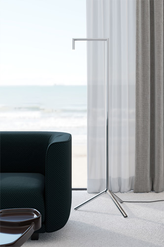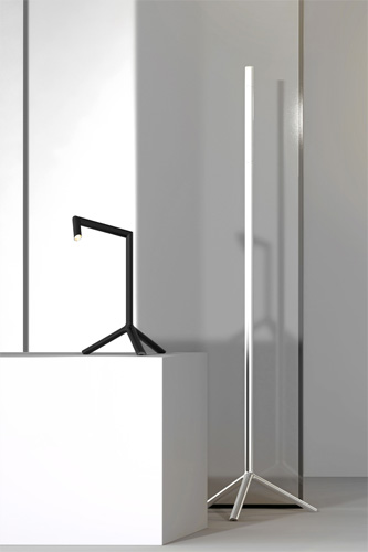 „Hangman kanalisiert das Licht durch eine extrem minimale Struktur und bietet gleichzeitig ein hohes Maß an Funktionalität durch zahlreiche Positionen und Lichtrichtungen", so Adam Goodrum über die Kollektion, die eine Tischleuchte, eine Stehleuchte und eine Deckenpendelleuchte umfasst. Das Konzept für die Kollektion entstand aus Goodrums langjähriger Faszination für technische Mechanismen und Geometrie.