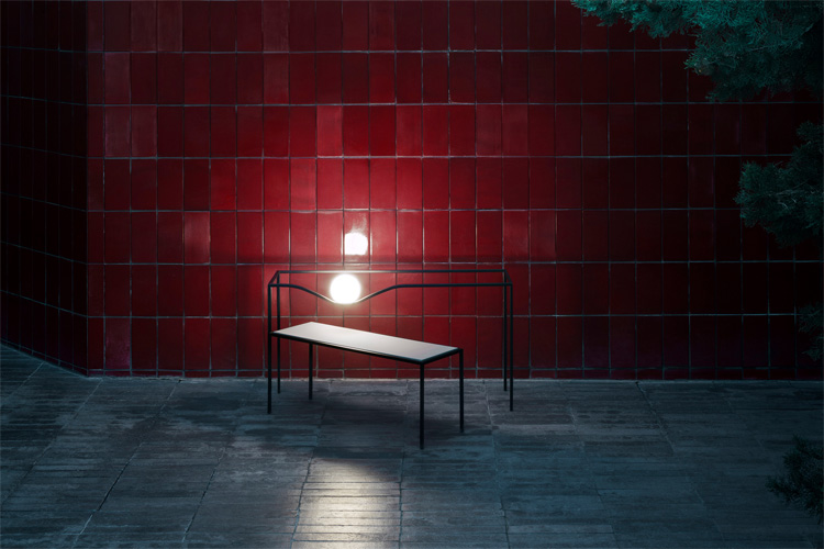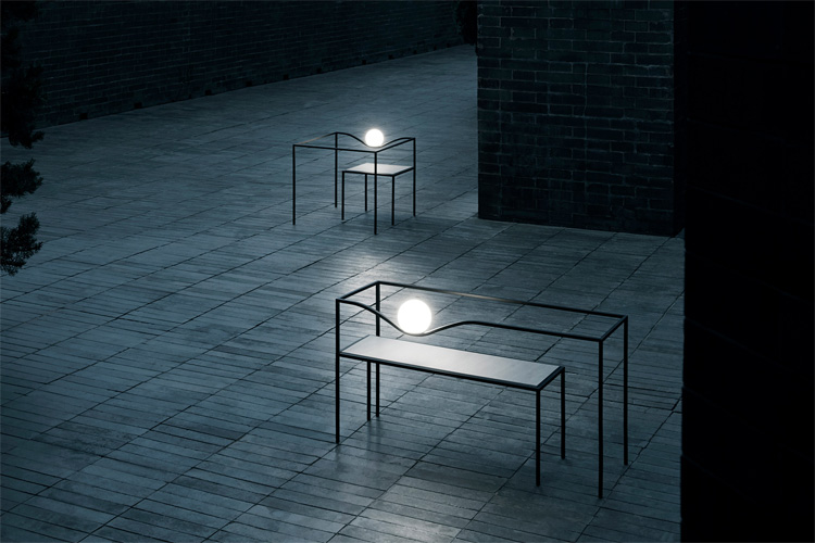 „Mit der Kombination aus einem feinen Rahmen und einer beleuchteten Kugel bietet die Kollektion zwei Konfigurationsmöglichkeiten: entweder als Beistelltische oder als an die Wand gelehnte Bodenleuchten. Die weiche Form der Rahmen verleiht den Objekten einen eigenen Charakter und schafft ein einzigartiges Erscheinungsbild. So, als ob sie selbst das Gewicht des Lichtes einfangen würden.“ Nendo.