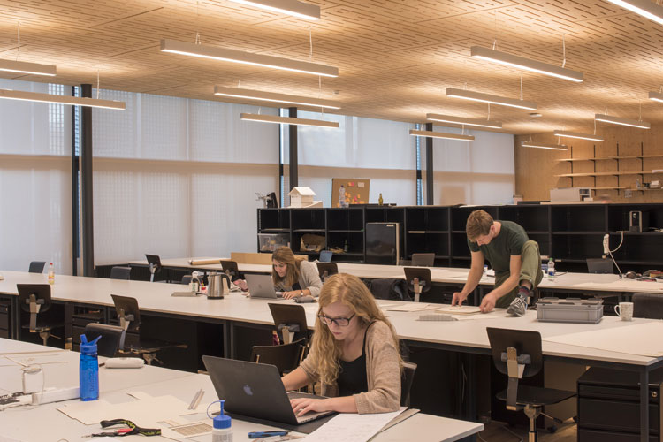 Das Innenarchitektur-Atelier wird nun für Studien genutzt, die sich in den Tagesablauf und in die typischen Nutzungen wie Lehrveranstaltungen, Coachings und kreatives Arbeiten der Studierenden integrieren lassen. Die Lichtfarbe und -intensität lässt sich jederzeit individuell einstellen, aber auch eine automatische, allmähliche Variation über den Tag ist programmiert und per Fingertip aktivierbar.