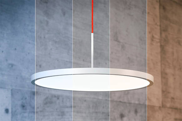 Die neue Pendelleuchte berücksichtigt die biologische Wirkung von Licht auf unser Wohlbefinden. Das Lichtmanagementsystem Visual Timing Light (kurz: VTL) simuliert den natürlichen Tageslichtverlauf, indem die Farbtemperatur und die Beleuchtungsstärke des Lichts zwischen 2700K und 6500 Kelvin variiert. Das aktivierende Licht am Morgen und am Mittag kurbelt die Ausschüttung des Leistungshormons Cortisol und des Glückshormons Serotonin an. Gleichzeitig wird die Produktion des Schlafhormons Melatonin unterdrückt. So stellt sich der Körper auf Tagbetrieb ein. Im Tagesverlauf nimmt die Melatonin-Produktion wieder zu und unterstützt so den natürlichen Schlaf-Wach-Rhythmus. So unterstützt das Licht auf natürliche Weise.