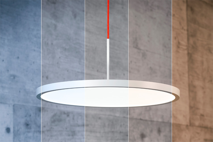 Die neuen Raumleuchten sind in den Durchmessern 450 und 600 cm erhältlich. Das hochwertige Gehäuse präsentiert sich in selbstbewusstem Weiß. Ein weiteres Highlight ist das Textilkabel, dass es in selbstbewusstem Rot oder dezentem Weiß gibt. Je nach Raumhöhe und Gestaltungswunsch, kann das Kabelpendel zwischen 50 und 200 Zentimetern angepasst werden. Zusätzlich sorgen verschiedene Lampenschirme für wohnlichen Charme. Im Baldachin ist ein Montageplatz für das optionale Casambi-Modul vorgesehen. So ist auch eine nachträgliche Ausstattung der Leuchte möglich.