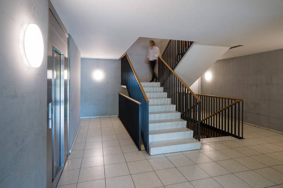 In den Häusern der Züricher Wohnanlage werden jeweils die Leuchten einer Etage zu einer Bereichsgruppe verbunden. Ein Gruppenmaster wird anhand der gewünschten Funktionen konfiguriert. Registrierte Bewegungen werden an den Master gemeldet.