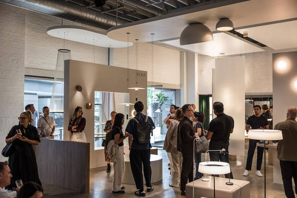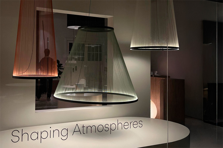 Der Showroom ist in vier Produktbereiche gegliedert - Materiality & Warm Light, Conducting Light Through Space, Dynamic Light und lndoor-Outdoor Living - und lädt die Besucher ein, die Sprache von Vibia aus verschiedenen Perspektiven zu erleben.