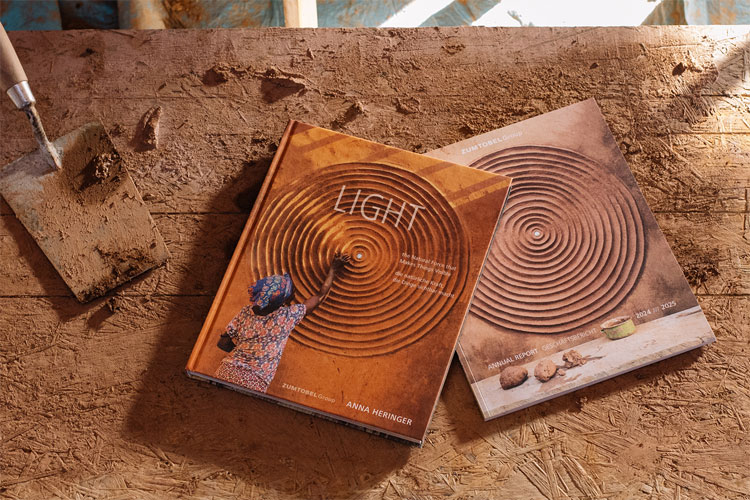 Die Einladung, den Geschäftsbericht für die Zumtobel Group zu gestalten war Anlass für Anna Heringer, einen Teil ihrer persönlichen Welt zu teilen, in der sie im deutschen Laufen ebenso wie in Bangladesch beheimatet ist. Die Kontemplation über Licht ließ sie sinnieren über Licht im Allgemeinen, über die Lichtblicke in ihrem Leben und auf globaler Ebene, in der Weltgesellschaft – wobei ihr Letzteres schwerfiel