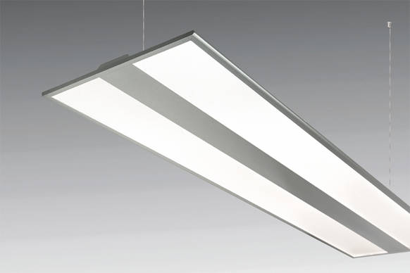 Trotz flacher Bauform sind Varianten mit Lichtsteuerung und Sensorik für modernes Lichtmanagement und Advanced Services verfügbar. Die Leuchte mit LED-Kanteneinspeisung der neuesten Generation erzielt eine hervorragende Effizienz von 138 lm/W. Sie ist für Einzel- und Doppelarbeitsplätze perfekt ausgelegt und passt mit den angebotenen Lichtfarben in Warm- oder Neutralweiß in jedes Ambiente.