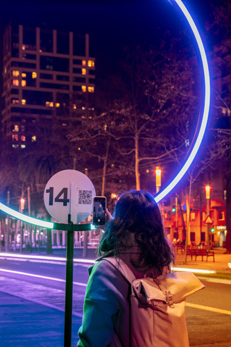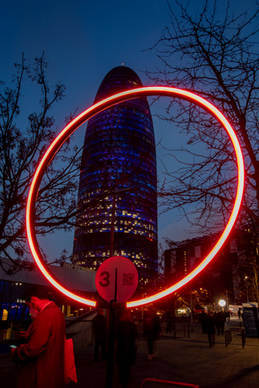 Das Beschilderungsprojekt Llum BCN 2022 umfasst 19 große Lichtskulpturen, die an strategischen Punkten im Viertel Poblenou von Barcelona aufgestellt sind, einem der dynamischsten und lebendigsten Viertel der Stadt, das den natürlichen Rahmen für dieses Festival der Lichtkunst bildet. Das zentrale Designelement jeder Beschilderungsskulptur ist der Kreis: eine minimalistische Ausdrucksform für das Konzept Ort bzw. Treffpunkt. Die Ringe mit eingearbeiteten LED-Streifen sind ein Entwurf der Abteilung für Sonderprojekte von LedsC4. Sie werden auf einer Höhe von 3 Metern auf minimalistischen Strukturen installiert und haben einen Durchmesser von jeweils 1,5 Metern.