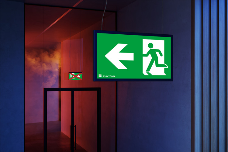 SMARTSIGN ergänzt das Sicherheitsportfolio von Zumtobel um eine richtungsvariable Rettungszeichenleuchte. Sie ermöglicht eine dynamische Fluchtwegführung und leitet angepasst der Gefahrensituation auf dem sichersten Weg ins Freie. Grundlage bildet ein Full-HD-Display mit individuell programmierbaren Inhalten. Neben den vorinstallierten Sicherheitszeichen nach ISO 7010 lassen sich zusätzliche Texte in verschiedenen Sprachen darstellen.