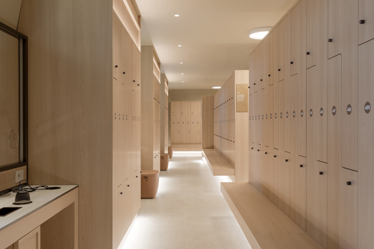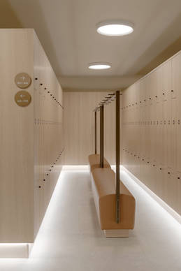 In intimeren Bereichen wie Umkleiden und Kabinen wurde die Leuchte TARA gewählt, während für Lounges und Entspannungsbereiche lineare Leuchten PASEO und flexible Systeme wie RUBBER, RUBBER OPTICS und RIBBON eingesetzt wurden, die häufig in architektonischen Nischen und in der Wandvertäfelung verborgen sind. An der Decke kombiniert das Projekt minimalistische Lösungen wie GIOTTO, GYPSUM CELL oder EYELET mit verstellbaren und vielseitigen Strahlern wie GOOSE, POUND Focus und NAVATA, die sich auch in technischen Bereichen wie der Gastronomie bewähren.