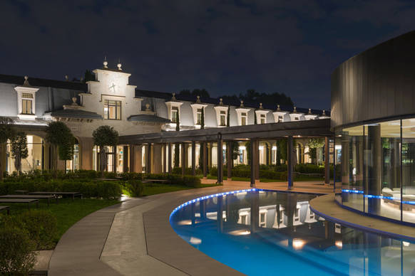 Der Eingriff der Linea Light Group betraf alle Bereiche der Terme de Montel mit dem Ziel, einen Dialog zwischen Licht und Architektur zu schaffen. Die weitläufigen und vielschichtigen Außenbereiche erforderten eine doppelte Aufmerksamkeit: einerseits die Aufwertung des historischen Gebäudes (auch auf Anweisung der Denkmalbehörde), andererseits die visuelle Definition der Erlebniszonen wie Becken, Wege und Grünflächen.