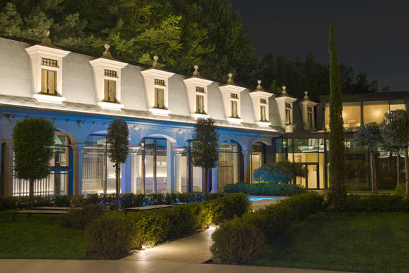 Zur Vervollständigung der Lichtlandschaft kamen außerdem die dekorative Pollerleuchte BLUM sowie das flexible lineare System D-WAVE mit halbkreisförmiger Installation an dem charakteristischen runden Pool im Innenhof zum Einsatz. An derselben Stelle trägt die Kollektion ALCOR dazu bei, die Wege zu markieren.