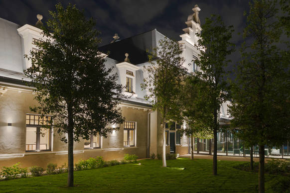 Es wurden integrierte Lösungen, dezente Uplights und architektonische Downlights – oft paarweise – eingesetzt, um die Wege zu führen und den Räumen Tiefe zu verleihen. Hervorzuheben sind die Downlights QUANTUM und WARP in der nachhaltigen und anpassbaren EVO-Konfiguration: «Wir konnten Optiken, Filter und Oberflächen individuell auswählen. Ein großer Vorteil, um ein maßgeschneidertes Beleuchtungskonzept zu entwickeln, das mit jedem Raum harmoniert.»