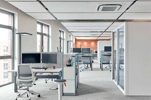 Gerade im Wettbewerb um Fachkräfte wird die Bürogestaltung zunehmend zum strategischen Faktor im Employer Branding. Studien zeigen, dass Licht dabei eine entscheidende Rolle spielt: Im Headquarter von CBRE in Amsterdam führte der Einsatz von Human Centric Lighting zu einer 18 % höheren Arbeitsleistung, einer 12 % besseren Genauigkeit und einer spürbar gestiegenen Mitarbeiterzufriedenheit. Auch eine Analyse von A.T. Kearney zeigt messbare Effekte: Durch den gezielten Einsatz von HCL lassen sich die Produktivität um 4,5 % steigern, Fehler und Unfälle um bis zu 2 % senken – und auch die Krankheitstage verringern sich.