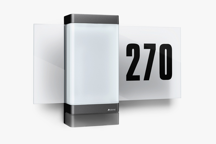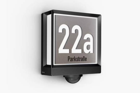 STEINEL bietet für die Hausnummernbeleuchtung verschiedene Modelle an, die kabelgebunden oder auch kabellos per Solarlicht funktionieren und sich auch dort platzieren lassen, wo es keinen Stromanschluss gibt. Modelle der My-Serie lassen sich sogar individuell mit Hausnummer und einem Schriftzug für Straße oder den Familiennamen personalisieren.