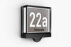 • Außenleuchte mit Bewegungsmelder und beleuchtetem Hausnummernpanel im