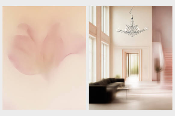 Mit diesem neuen Fotoprojekt wird genau diese Sensibilität auf Räume übertragen: vom Kleinen zum Großen, vom Natürlichen zum Imaginären. Ausgehend von der fragilen, natürlichen Nahaufnahme einer Blume entstehen so wohnliche Szenerien, in denen Foscarini-Leuchten einen festen Bezugspunkt bilden. Die Leuchten selbst wurden fotografiert und bewusst nicht nachträglich generiert, um ihre Authentizität zu bewahren. Das Ergebnis ist kein Abbild der Realität, sondern eine poetische Übersetzung der Wirklichkeit.