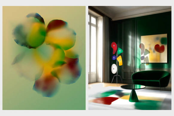 Entstanden ist eine Serie von Bildwelten, in denen KI-generierte Räume auf real fotografierte Leuchten treffen. Die Technologie dient dabei als Mittel zur Erweiterung der menschlichen Wahrnehmung. Ziel der gemeinsamen Recherche von Gardone und seinem Studio Azimut mit Foscarini war es, dem Computer beizubringen, „wie ein Fotograf zu sehen“ und damit die charakteristische, schwebend-poetische Bildsprache Gardones nachzuempfinden. Ausgangspunkt der Bilddatensammlung war die florale Welt, die Gardone seit Jahren fotografisch begleitet. Tausende Blumenaufnahmen wurden der KI eingespeist: jede Nuance, jede Textur wurde analysiert, abstrahiert und neu zusammengesetzt.