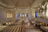 Das Zusammenspiel aus linearen Wandanbauleuchten oder den Deckeneinbauleuchten in den Seitenemporen, Wandanbaustrahlern und den Kapitell-Leuchtsystemen folgt den jeweils gewünschten Lichtstimmungen, Zonierungswünschen und an die Nutzung angepassten Szenarien. Die dimmbaren Lichtsysteme werden dabei zentral angesteuert.
