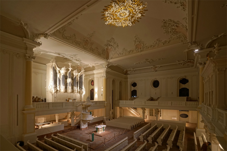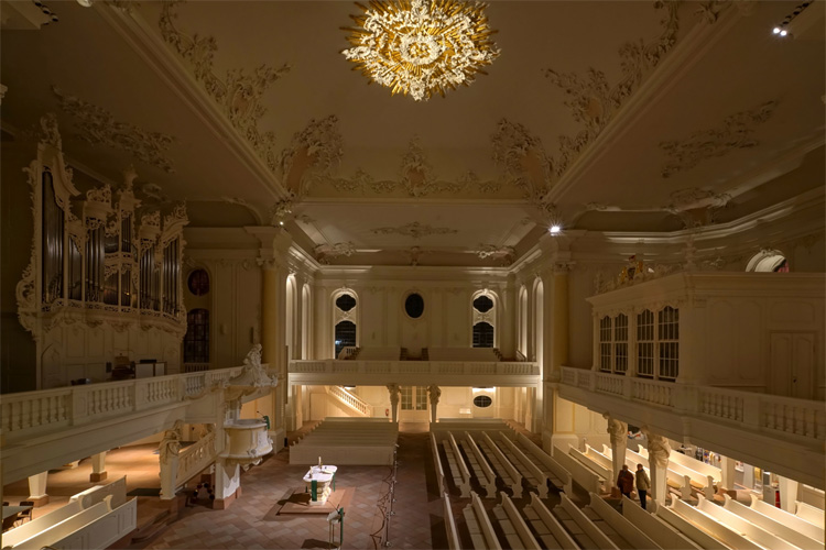 Zu ihrem 250. Geburtstag erstrahlt eine der bedeutendsten evangelischen Barockkirchen Deutschlands in frischem Glanz: Die Ludwigskirche in Saarbrücken präsentierte sich in ihrem Jubiläumsjahr 2025 unter anderem anlässlich der Feierlichkeiten zum Tag der Deutschen Einheit einem großen Publikum samt bundes- und außenpolitischer Prominenz. Die vorangegangene Innensanierung umfasste auch die Erneuerung der Lichttechnik und damit ein nutzungsbedingtes, energieeffizientes und detailreiches Beleuchtungskonzept. Die süddeutsche Lichtmanufaktur luxwerk lieferte Lichtlösungen und projektspezifische Sonderleuchten, die nun Architektur und Ornamentik wirkungsvoll inszenieren.