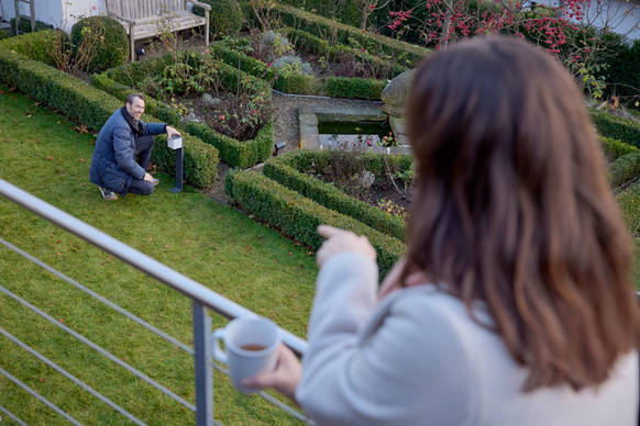 An welchen Stellen brauche oder möchte ich Licht haben? - Soll Licht im Außenbereich installiert werden, muss im Vorfeld überlegt werden, an welchen Stellen Licht gewünscht ist. Wo wird funktionales Licht benötigt und an welchen Stellen ist eine Lichtinszenierung gewünscht? Dies bedingt auch die Überlegung, ob größere Flächen oder weitläufige Areale beleuchtet werden sollen. Hierfür bietet sich eine Vernetzung von mehreren Leuchten an. Die Einteilung in Lichtgruppen hilft dabei, Licht ganz nach Wunsch reagieren zu lassen. Alle miteinander verbundenen Leuchten reagieren einheitlich wie eine Gesamtleuchte.