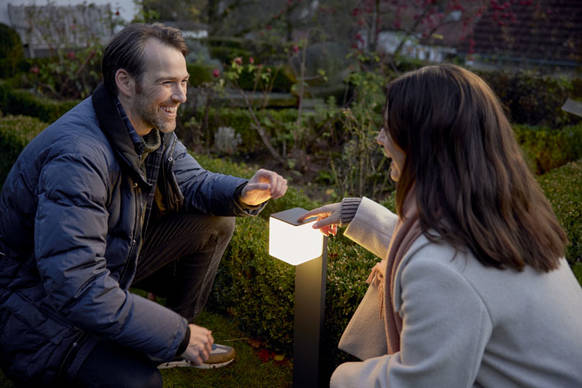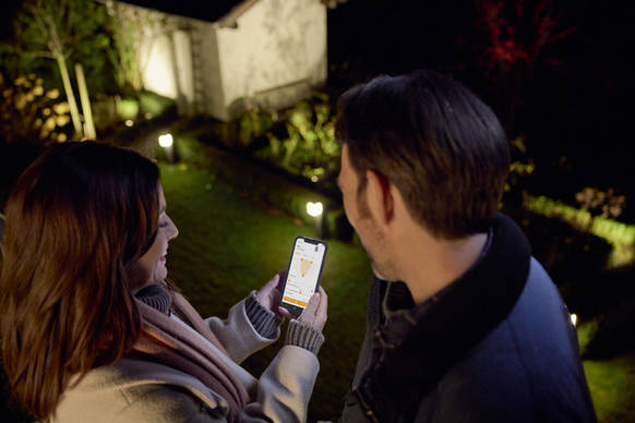 In der STEINEL Smart Remote App werden alle Leuchten über die Bluetooth-Verbindung angezeigt. Ohne eine aufwändige Kabelverlegung lassen sich die Leuchten nun kabellos per Bluetooth auswählen und zu sinnvollen Licht-Gruppen zusammenfassen. Rund ums Haus können dies – je nach örtlichen Gegebenheiten - zum Beispiel die Lichtgruppen Hauseingang & Vorgarten, Garagenauffahrt, Terrasse oder Gartenweg sein. Im nächsten Schritt können für jede Lichtgruppe entsprechende Einstellungsparameter hinterlegt werden. Auch andere Bluetooth-Leuchten aus dem Connect-Sortiment von STEINEL können in die Lichtvernetzung einbezogen werden.