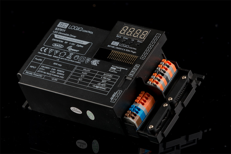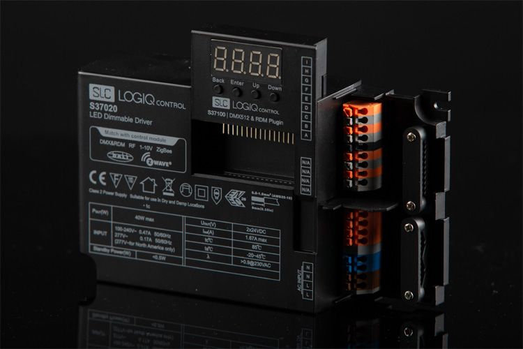 Dazu wird einfach das passende Steuerungs-Plugin in den Treiber eingesetzt: DALI DT6, DALI DT8, DMX und RDM, RF, 1-10V, Zigbee und Z-Wave sind bereits erhältlich. Zukünftig werden auch weitere Plug-ins wie KNX, Enocean und Bluetooth verfügbar sein.