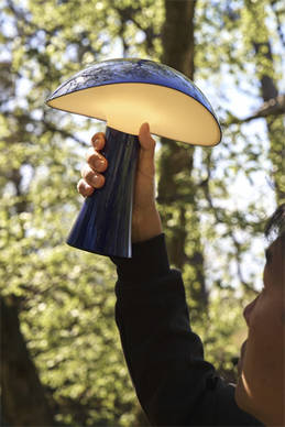 Inspiriert von den wellenförmigen Kurven eines weit ausladenden Hutes besticht die Rumee Portable Lamp durch ein skulpturales Design, das Elemente der natürlichen Welt aufgreift. Ihr Name leitet sich teilweise von dem dänischen Wort „rum" für „Raum" ab und spielt zugleich auf die Idee eines Mitbewohners an. Die tragbare Leuchte ist nicht nur optisch ansprechend, sondern liegt auch angenehm in der Hand und lässt sich mühelos von einem Ort zum anderen transportieren.