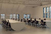 Das Büro ist aufgeteilt in Besprechungsräume und Räume des täglichen Bedarfs, wie Küche, Toiletten und Lager. Zudem gibt es eine multifunktionale „Agora“ für informelle Treffen und Zusammenkünfte. Sie soll auch für Telefongespräche, Präsentationen und für einmalige Ausstellungen genutzt werden. Nicht zuletzt verfügt das Büro über feste Arbeitsplätze für bis zu 44 Personen.