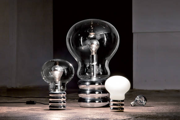Mit der „Bulb" von 1966 fing alles an. Sie markiert den Beginn von Ingo Maurers Karriere als Produktgestalter. Aus der Begeisterung für die Schönheit einer einfachen 15-Watt Glühbirne entstand die Idee der Überhöhung. Der Lichtdesigner reiste nach Murano und ließ ein Glas und einen Sockel anfertigen. So entstand eine Ikone der Pop-Art-Ära, die bereits 1969 in die Sammlung des Museum of Modern Art in New York aufgenommen wurde. Im Laufe der Jahre kamen verschiedene Gläser, Größen, Farben und sogar Sondereditionen mit handgefertigten Insektenmodellen hinzu. Besonders beliebt war die 56 cm hohe „Giant Bulb", die ebenfalls in den 1960er Jahren auf den Markt kam. Noch heute wird die originale „Bulb"-Tischleuchte von 1966 mit mundgeblasenem Kristallglas aus Murano produziert.