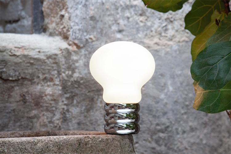 Als mobiler Begleiter passt sich die batteriebetriebene Version des Designklassikers den Bedürfnissen ihres Besitzers an und kann mühelos vom Schlafzimmer ins Wohnzimmer, auf die Terrasse oder sogar zum Picknick ins Grüne mitgenommen werden. Sie eignet sich aber auch ideal als Hingucker auf festlich gedeckten Hochzeitstafeln und Gartenpartys. Ihre beeindruckende Flexibilität verdankt sie nicht nur ihrem langlebigen Akku, sondern auch dem bruchsicheren Glaskopf. Wie das Original von 1966 besteht auch die 20 cm kleine „b.bulb" aus hochwertigen Materialien wie einem verchromten Aluminiumsockel und einem mattierten Glaskörper, der ein warmes, weiches Licht erzeugt.