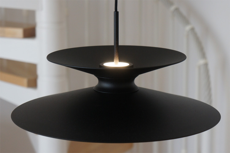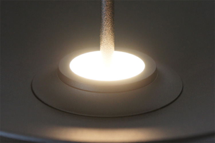 Die technische Lösung der Abstrahlung nach oben ist eine Meisterleistung! Durch die mittige Führung der Abhängung direkt durch den Diffusor kommt es zu keinerlei störender Schattenbildung an der Decke und den Wänden. Der Diffusor strahlt sein Licht kraftvoll in einem Winkel größer 90° nach oben ab und erhellt die Decke mit der 12,3 Watt starken CRI97 Sun-Like-Technology LED mit bis zu 1113 Lumen.